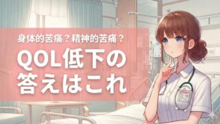 アセスメント 身体的苦痛?精神的苦痛? QOL低下の答えはこれ 緩和ケア実習で迷いやすい「身体的苦痛」と「精神的苦痛」の整理法を解説。トータルペインの視点で、痛みからQOL低下へ至る連鎖を捉え、実習記録や関連図にわかりやすく書くコツを紹介します。 アセスメント