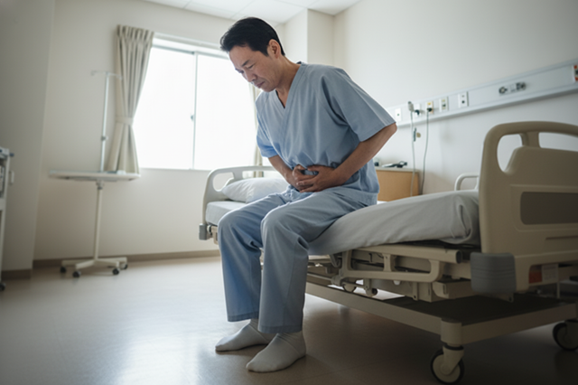・急性腹症の症状(腹痛、腹膜刺激症状)を観察し、異常があればすぐに医師に報告する