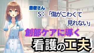 アセスメント 「怖くて見れない…」それでも創部ケアに導く看護の工夫とは!? 創部を見るのが怖い患者さんに、看護実習でどう関わるかを解説します。無理強いしない支援、段階的なセルフケアの進め方、観察項目とアセスメントの視点をわかりやすく整理しました。 アセスメント